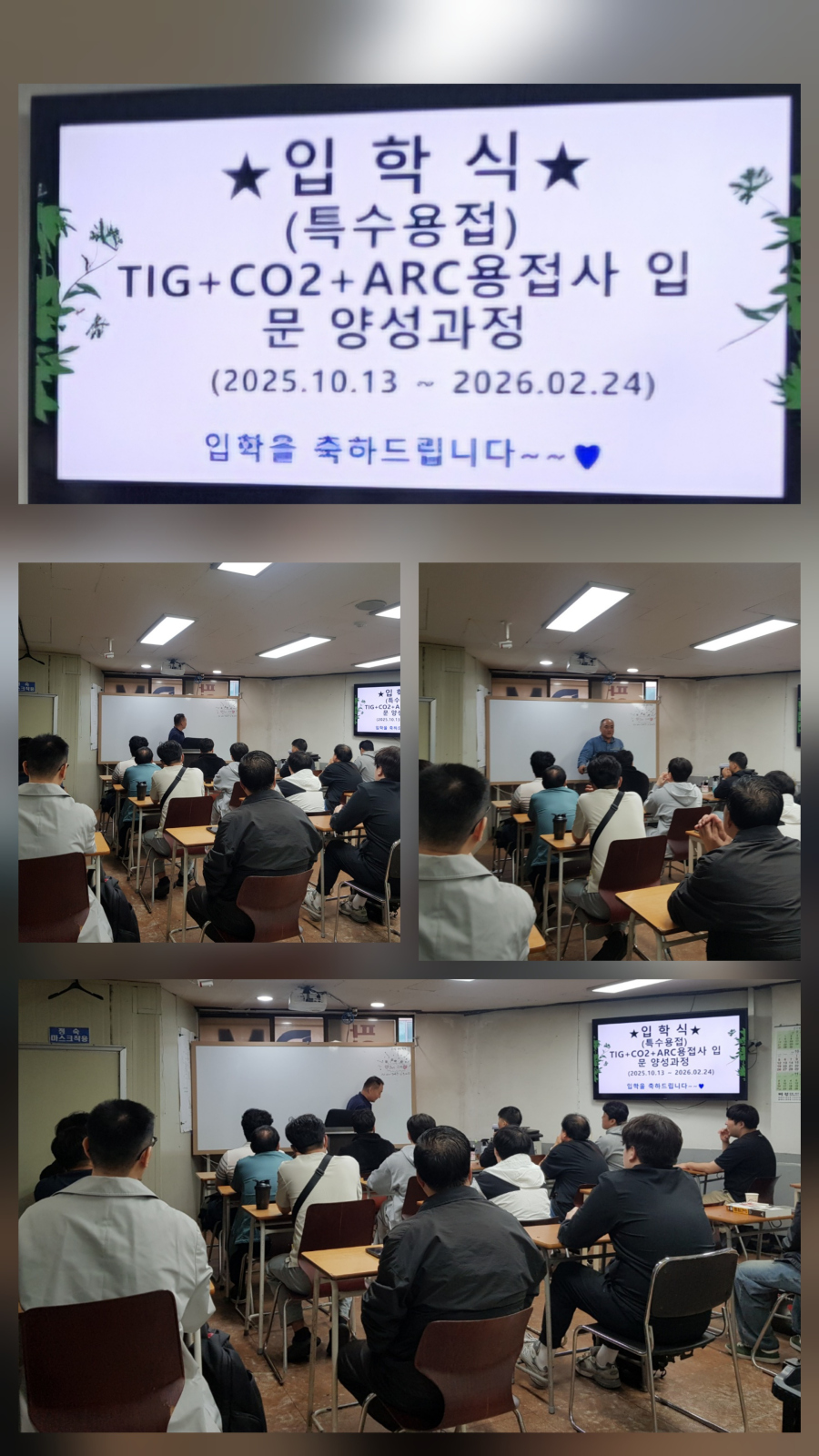 2025년10.13일~2026년2월24일 (국기과정 개강!!) 5개월 동안 DM과함께 홧팅합시다!! 운영자 0 6 10.15 12:50 2025년10월13일(월) "국기교육과정 (특수용접) TIG+CO2+ARC용접사 입문 양성과정" 을 개강하였습니다#^^#본 교육과정에 20명이상 접수해 주셔서 감사드리며, 선발되신 20명 모든분들과 앞으로 5개월동안 용접기술 습득과 원하시는 직장에 취업하실수 있도록 최선을 다해 교육하겠습니다!!